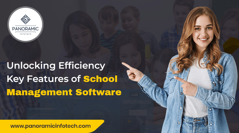 Conclusion: School management software is a powerful tool that unlocks efficiency in educational institutions by automating and streamlining various administrative tasks. Panoramic Infotech provides advanced School Management Software (SMS) that transforms the way educational institutions function. Our SMS is a complete and user-friendly solution created to simplify administrative tasks, improve communication, and boost efficiency in schools.